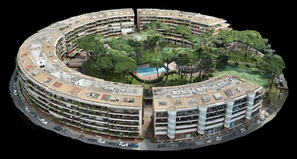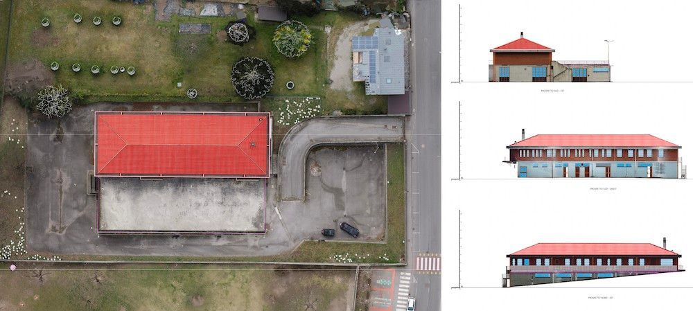 Il drone "vede" tutto quello che da terra non vediamo (tetti, coperture, porzioni di facciate coperte da terrazze o vegetazione) scatta migliaia di fotografie ad altissima risoluzione e georeferenziate (RTK), ispeziona il contesto.